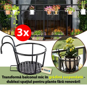 Primul set complet de suporturi care se așează perfect pe orice balustradă fără găurire sau montaj complicat! Transformă balustrada goală în grădină luxuriantă cu design elegant care completează orice decor. Instalare în 30 secunde!